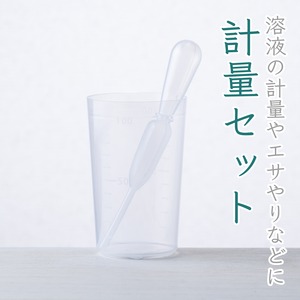 溶液の計量やエサやりなどに便利なスポイトと計量カップのセットです。